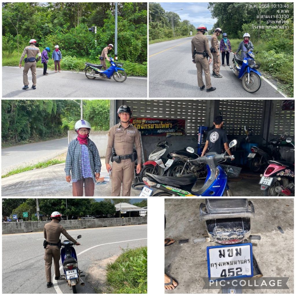 7 ต.ค.2568 เวลาประมาณ 10.13 น. ร.ต.ต.บัญชา สว่างแสง รอง สว.(ป).สภ.สามเงา พร้อมด้วยส.ต.ต.ชัชพล บุญนายืน ผบ.หมู่ (ป.)สภ.สามเงา,ส.ต.ต.พลพล มะโนนัย ผบ.หมู่ (ผช.พงส.)สภ.สามเงาขณะออกตรวจ อำนวยความสะดวกการจราจร แยกยกกระบัตร ได้มี ประชาชน ได้ขอความช่วยเหลือ รถจักรยานยนต์ยางรั่ว บริเวณสามแยกยกระบัตร อ.สามเงา ได้เดินทางมาจากยกกระบัตร เพื่อไปทำธุระที่ ธกส.สามเงา พอถึงที่เกิดเหตุ รถจักรยานยนต์เกิดยางรั่ว เจ้าหน้าที่ตำรวจจึงได้ทำการช่วยเหลือนำรถจักรยานยนต์ไปส่งที่ร้านซ่อมรถเพื่อทำการเปลี่ยนยางจนเสร็จสิ้น แล้วได้เดินทางต่อไป พร้อมทั้งกล่าวคำขอบคุณ ตำรวจจราจร