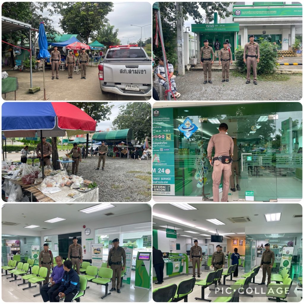 18 พ.ย.2568 เวลา 10.30น. ร.ต.ท.เกต เทพแก้ว รอง สว.(ป.) สภ.สามเงา ร้อยเวร 20 พร้อมสายตรวจรถยนต์ได้ออกตรวจพื้นที่รับผิดชอบตามสถาบันการเงินพร้อมเปิดไฟวับวาบและปรากฏกาย ณ ธนาคารเพื่อการเกษตรและสหกรณ์การเกษตร สาขาสามเงา ม.4 ต.สามเงา อ.สามเงา จ.ตาก เพื่อป้องกันเหตุอาชญากรรม ให้กับผู้ที่มาใช้บริการด้านธุรกรรมเกี่ยวกับการเงินต่อธนาคาร พร้อมได้พบปะพูดคุยกับผู้จัดการธนาคาร ธกส.ฯ เรื่องเกี่ยวกับการระมัดระวังป้องกันเหตุอันตรายจากคนร้ายและได้แนะนำวิธีขั้นตอนการโทร.แจ้งเหตุฯ ผลการปฏิบัติไม่มีเหตุเกี่ยวกับผู้มาใช้บริการแต่อย่างใด เมื่อได้เวลาสมควรได้ออกตรวจพื้นที่รับผิดชอบต่อไป