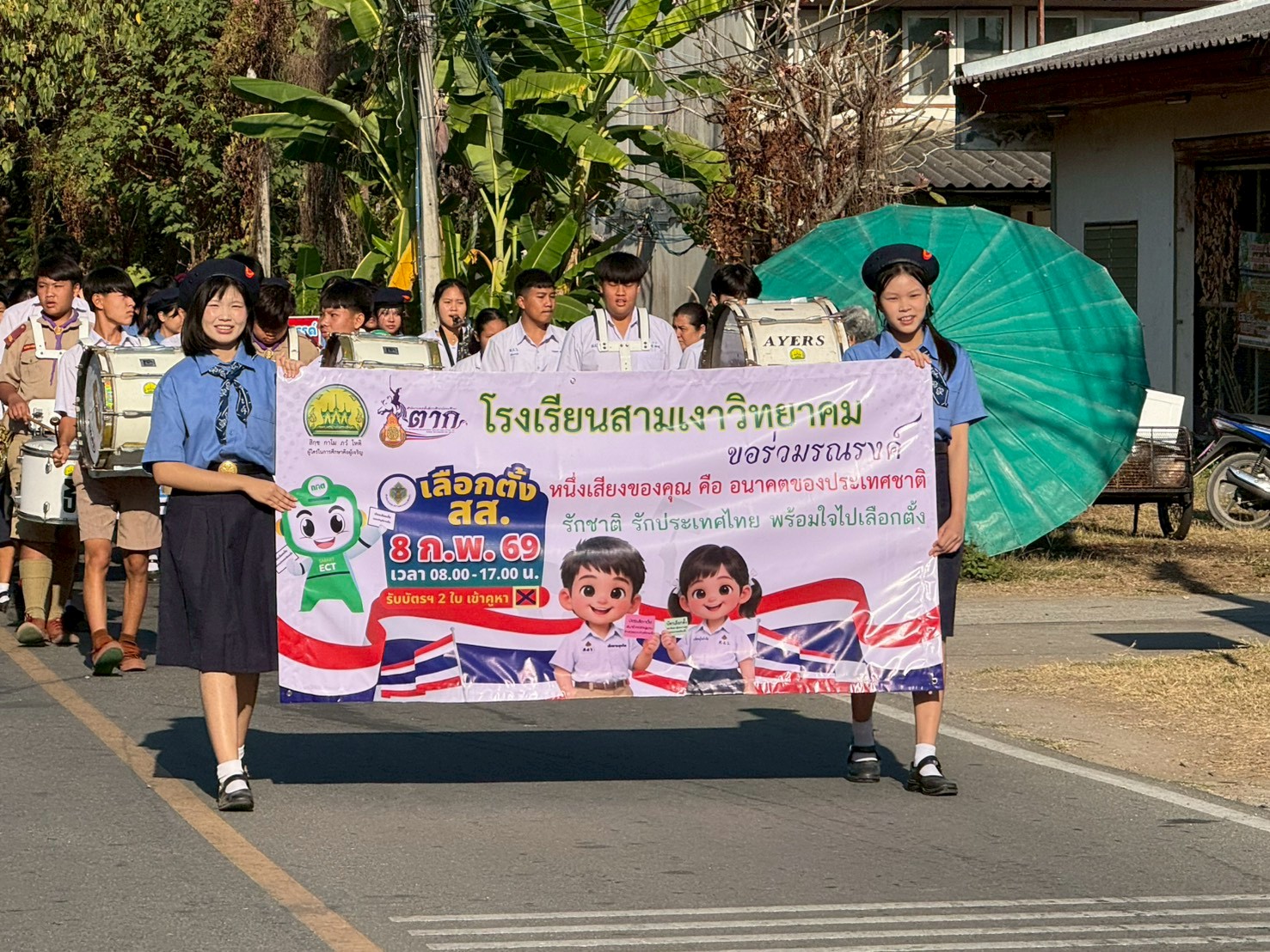 วันนี้( 6 ก.พ. 2569) เวลา 08.00-09.00 น. ร.ต.ต.บัญชา สว่างแสง รอง สว.(ป).สภ.สามเงา พร้อมด้วย ส.ต.ต.พลพล มะโนมัย ผบ.หมู่(ผช.พงส..)สภ.สามเงา ได้ออกอำนวยความสะดวกการจราจรการรณรงค์เลือกตั้ง สส. วันที่ 8 ก.พ. 2569 ของโรงเรียนสามเงาวิทยาคม การจราจรคล่องตัว เหตุการณ์ทั่วไปปกติ